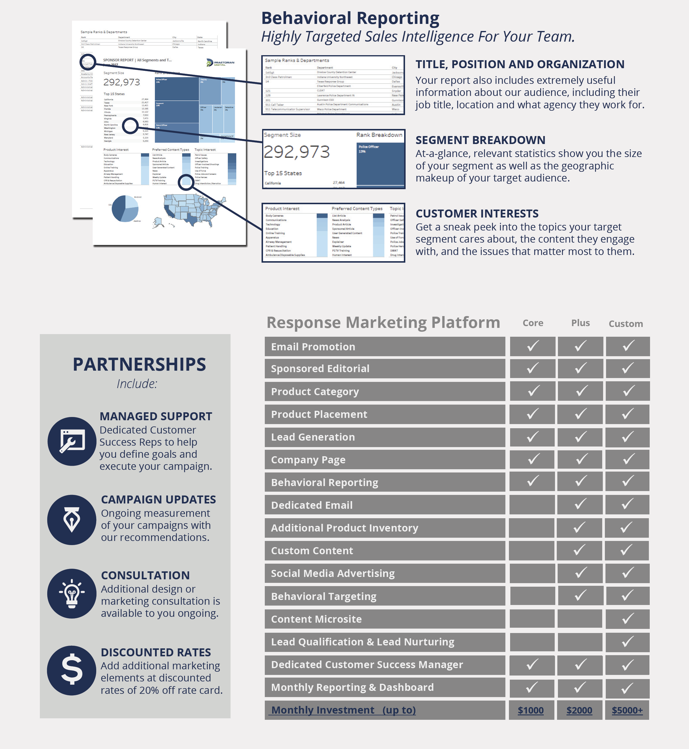 - Response Core – Amplify your voice in the market and engage prospects at the right time with a combination of inbound, outbound and targeted marketing, plus custom content and marketing intelligence. Expanded “plus” program options available.