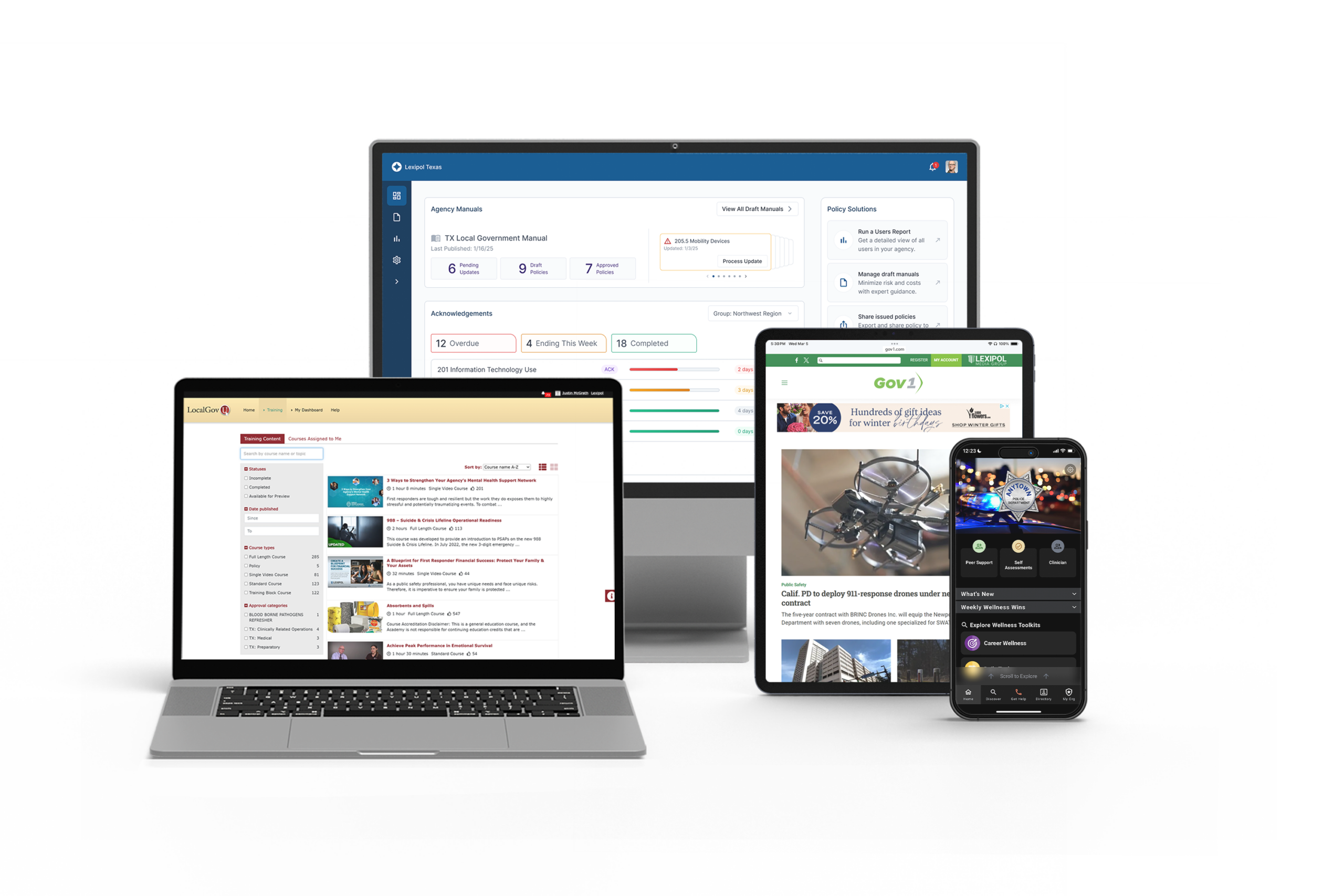 From breaking news to training on emerging threats, Lexipol’s public safety platform and Local Government policies and training solutions provide the services you need, including: