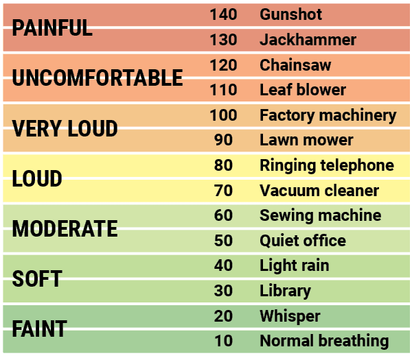 To give you a frame of reference for different levels of noise, here’s a handy guide (ranked from quietest to loudest):